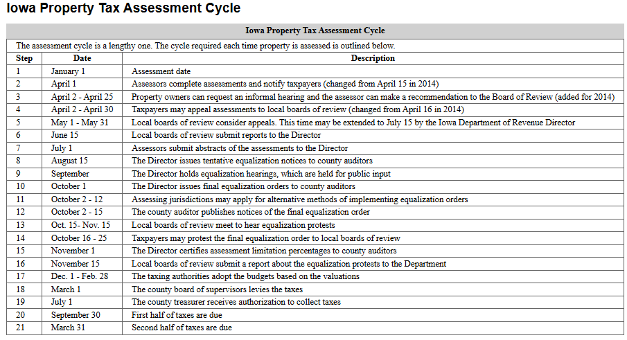 | Iowa Department of Revenue | Oversees statewide property tax rules and valuation standards |